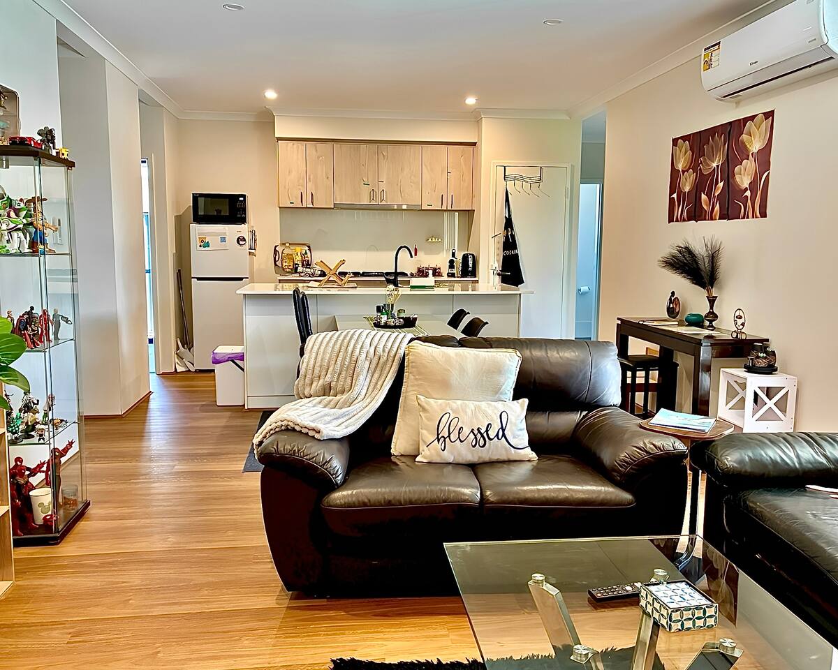 Welcome to The Gem of Vineyard: Cozy Hideaway at Aveley. We've poured a lot of care into creating a space that feels genuinely welcoming and relaxing, perfect for unwinding whether you're here for a quick getaway or a longer stay. Our aim is to provide you with a true retreat, designed for your ultimate comfort and relaxation. Here, you'll find (highlight)- • 3 spacious bedrooms (1 queen, 1 double, and 1 single with optional arrangement if floor mattress if required) • 2 sparkling clean bathrooms • Large living space with smart TV • Fully equipped kitchen with all essentials • Outdoor patio with seating — perfect for wine and sunsets • Fast Wi-Fi — work-friendly or stream-ready • Quiet and safe neighbourhood What might interest you? -Dedicated Workspace: Need to catch up on a few things? Our dedicated workspace with a plug-and-play monitor makes it easy. -Entertainment Ready: Enjoy your favorite shows on the 65-inch Smart TV. Optional record player and guitar available for music enthusiasts. Kitchenette Essentials: Our equipped kitchenette has the basics you'll need for simple meal preparation. -With an in-house washer and dryer, laundry is one less thing to worry about. -Private Backyard Oasis: Step outside to your private backyard, complete with comfortable furniture – a serene spot to relax, read, or simply enjoy the fresh air. -Flooded with Natural Light: Our home is truly blessed with an abundance of natural light streaming through spacious windows, creating a bright, airy, and uplifting atmosphere in every room. Location, Location, Location Nestled in a quiet neighborhood within the picturesque City of Swan, our home offers a peaceful escape from the hustle and bustle of city life. Yet, you're only a pleasant 35-40 minute drive from Perth City. This ideal location perfectly balances: -Peaceful Living: Enjoy the quiet, serene nature of the Swan Valley. 🌿 Location Highlights • 🍷 5–10 minutes to top Swan Valley wineries & breweries • 🍽️ Close to popular restaurants, cafes & local markets • 🚶 Scenic parks and walking trails nearby • 🚘 Just 30 minutes to Perth CBD & airport • 🛍️ Shopping centres, Coles, and essentials within minutes We aim to provide you with the retreat you deserve, complete with all the amenities to make you feel right at home.